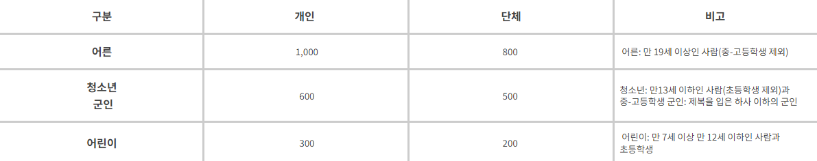 - 할인 대상자: 장애인, 국가보훈대상자, 다자녀 가족 등 할인 대상자는 관련 증빙서류를 지참해야 합니다.