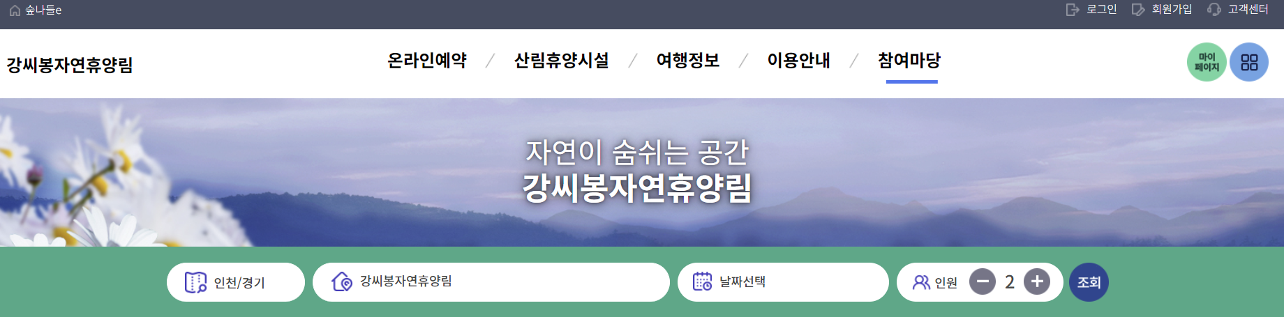 강씨봉 자연휴양림 예약 방법