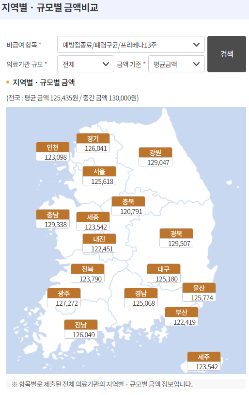 - 아래 사진은 (규모전체) 지역별 비급여 접종 평균 비용이오니 참고 바랍니다.